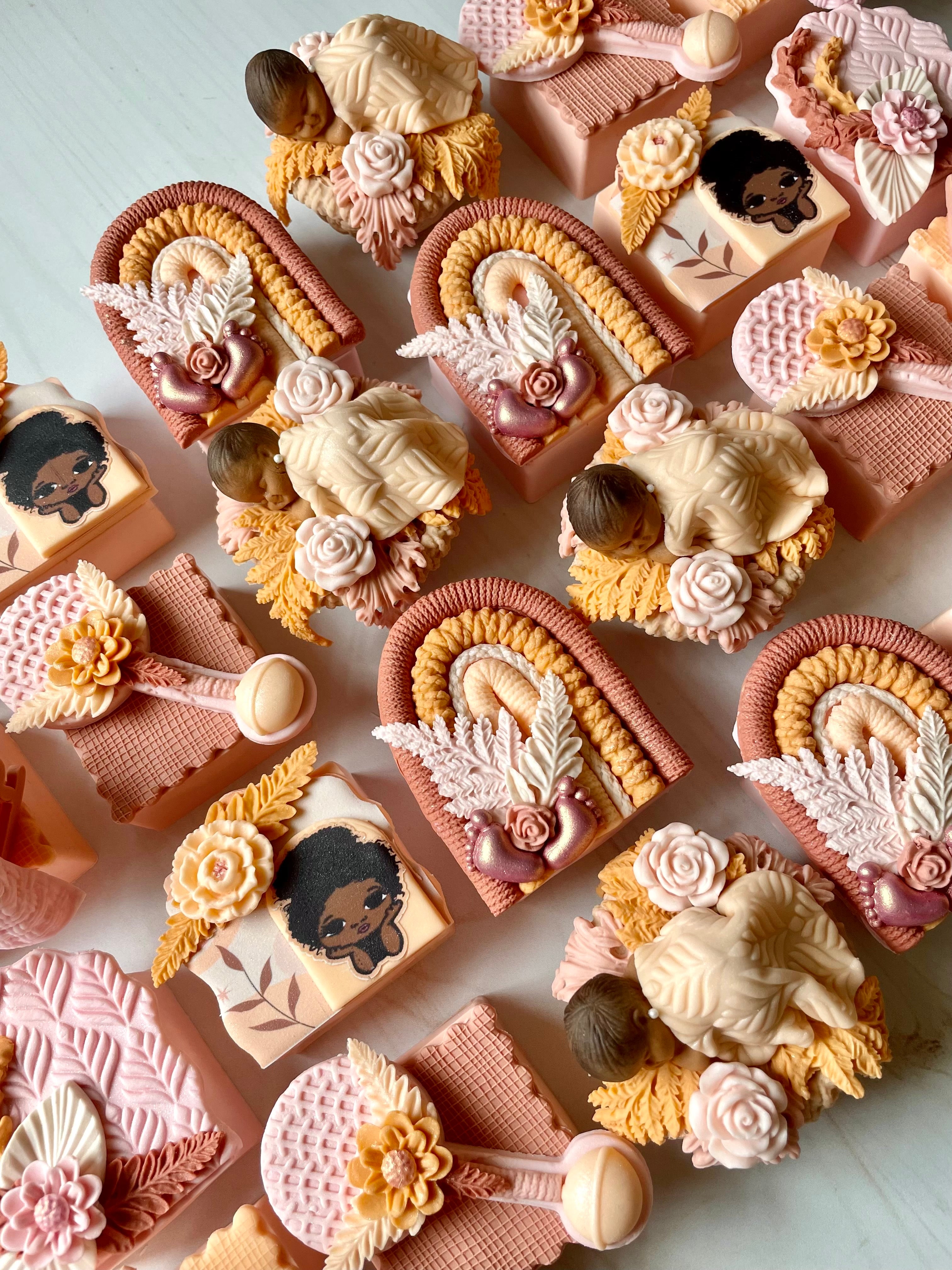 chocolate &/or fondant detail; fully covered in molded chocolate, or our ricesicle bars.
